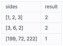 삼각형의 세 변의 길이가 담긴 배열 sides이 매개변수로 주어집니다. 세 변으로 삼각형을 만들 수 있다면 1, 만들 수 없다면 2를 return하도록 solution 함수를 완성해주세요.