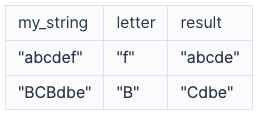 - my_string과 letter은 알파벳 대소문자로 이루어져 있습니다.