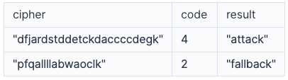 군 전략가 머쓱이는 전쟁 중 적군이 다음과 같은 암호 체계를 사용한다는 것을 알아냈습니다.