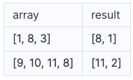 정수 배열 array가 매개변수로 주어질 때, 가장 큰 수와 그 수의 인덱스를 담은 배열을 return 하도록 solution 함수를 완성해보세요.