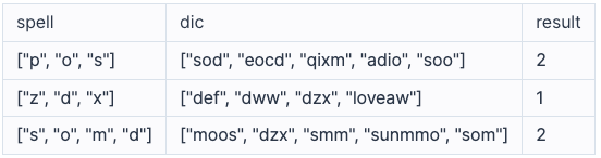 - spell과 dic의 원소는 알파벳 소문자로만 이루어져있습니다.