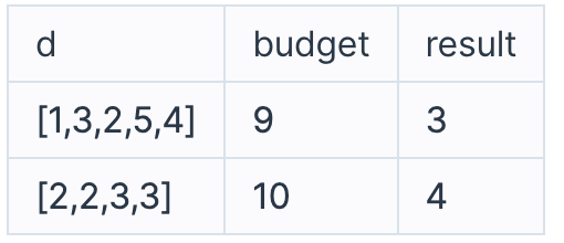 function solution(d, budget) {