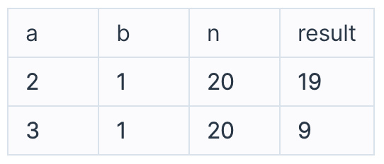 - 1 ≤ b < a ≤ n ≤ 1,000,000