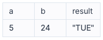 입니다. 예를 들어 a=5, b=24라면 5월 24일은 화요일이므로 문자열 "TUE"를 반환하세요.