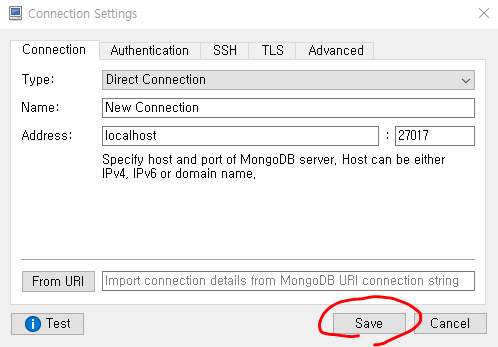 *주의점: 몽고디비캠퍼스 체크박스해제