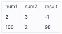 정수 num1과 num2가 주어질 때, num1에서 num2를 뺀 값을 return하도록 soltuion 함수를 완성해주세요.