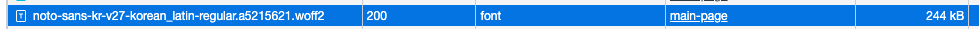 font-face를 WOFF2로 적용한 결과 이전에 적용했던 OTF확장자를 적용했을때보다 폰트 파일 사이즈가 확실이 줄었다.(3.8MB => 244KB)