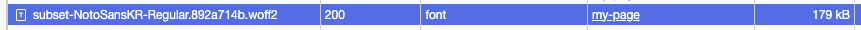 오늘 폰트 최적화의 과정을 보자면 OTF(3.8MB) => WOFF2(244KB) => 서브셋 적용 WOFF2(179KB) 대략 3.6MB정도 줄어들었다.