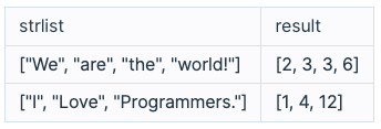 문자열 배열 strlist가 매개변수로 주어집니다. strlist 각 원소의 길이를 담은 배열을 retrun하도록 solution 함수를 완성해주세요.