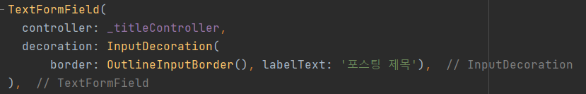 | 플러터(flutter) TextField 밑줄 텍스트랑 가까이 붙히기(isDense:) (0) | 2021.09.27 |