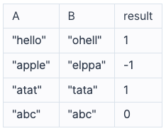 - A, B는 알파벳 소문자로 이루어져 있습니다.