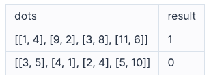- dots의 원소는 [x, y] 형태이며 x, y는 정수입니다.