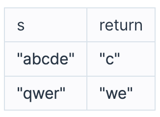 단어 s의 가운데 글자를 반환하는 함수, solution을 만들어 보세요. 단어의 길이가 짝수라면 가운데 두글자를 반환하면 됩니다.