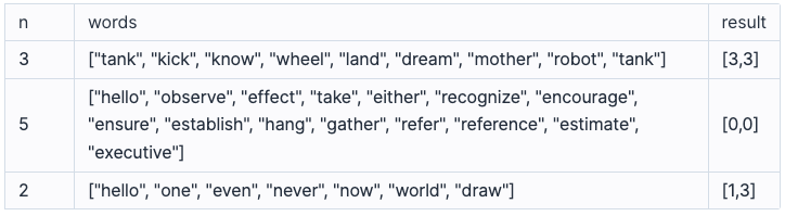 - 단어의 길이는 2 이상 50 이하입니다.