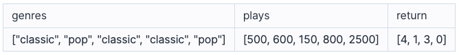 - plays[i]는 고유번호가 i인 노래가 재생된 횟수입니다.