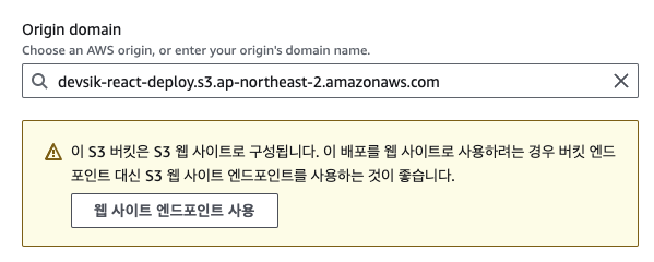 원본 도메인에 이전에 생성한 S3버킷 선택