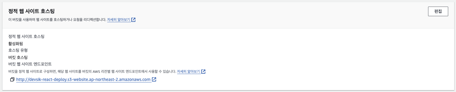 "웹 사이트 엔드포인트 사용" 버튼 클릭