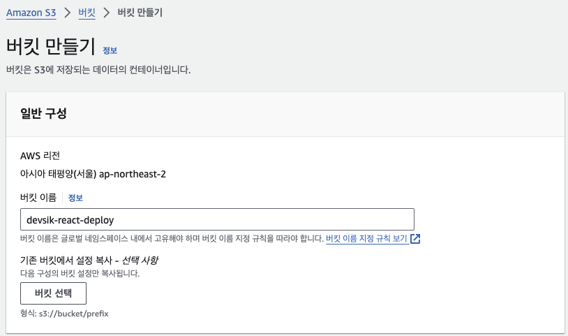 버킷 이름 작성