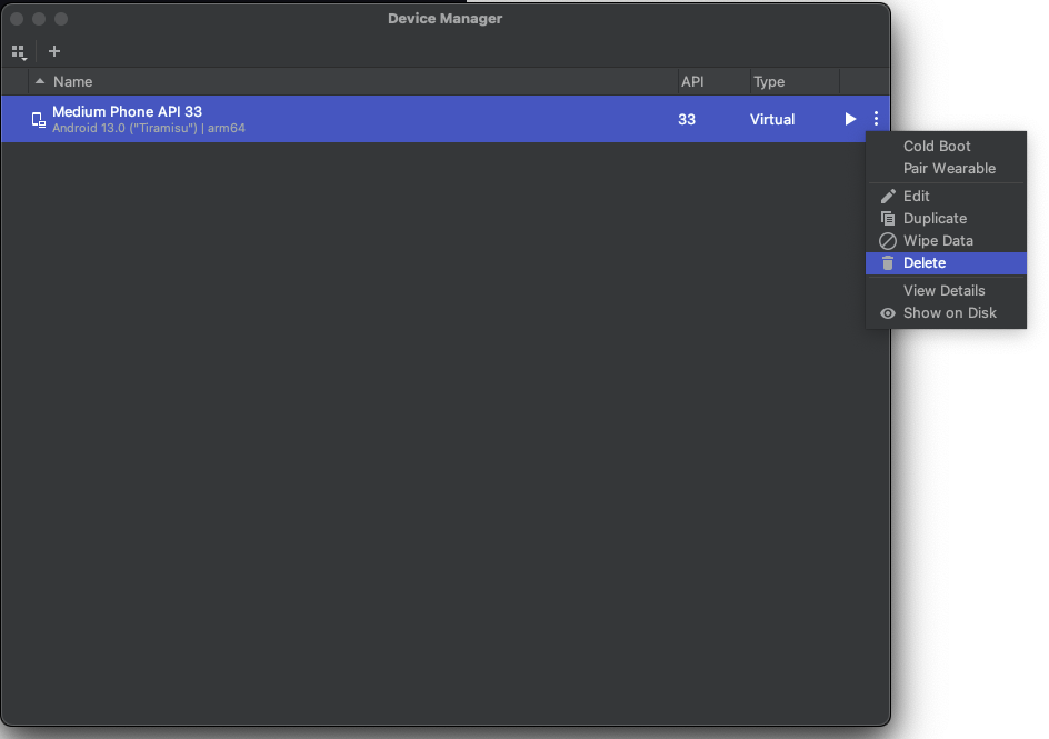 3. create device를 통해 새로운 기기를 등록한 후 실행시킨다.