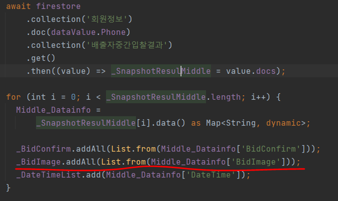 _BidImage.addAll(List.form(Middle_Datainfo['BidImage])); 형식으로 저장한다.