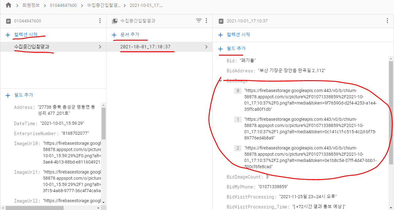 컬렉션 -> 문서(doc) -> 필드에 있는 배열의 값을 가져올때에는 List.form을 사용한다.