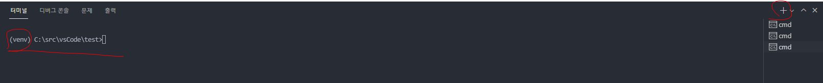 - 새로운 cmd 생성 ⇒ venv 확인