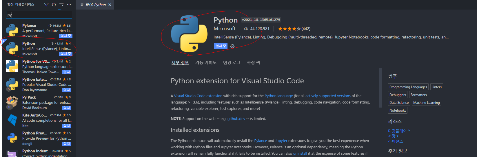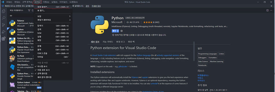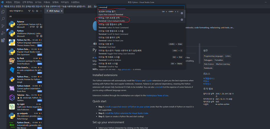 vs code Extensions에서 Python 설치