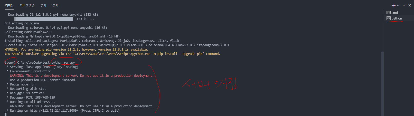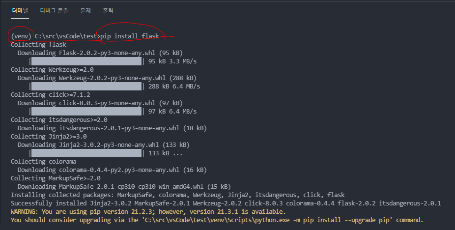 4. python 가상환경에 flask 설치