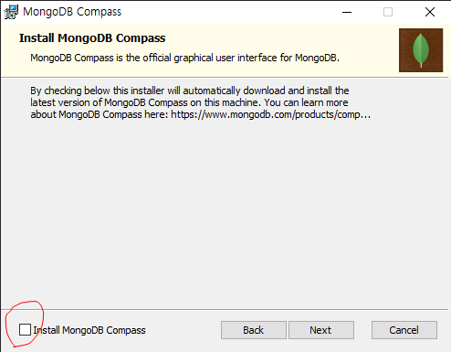 *주의점: 몽고디비캠퍼스 체크박스해제