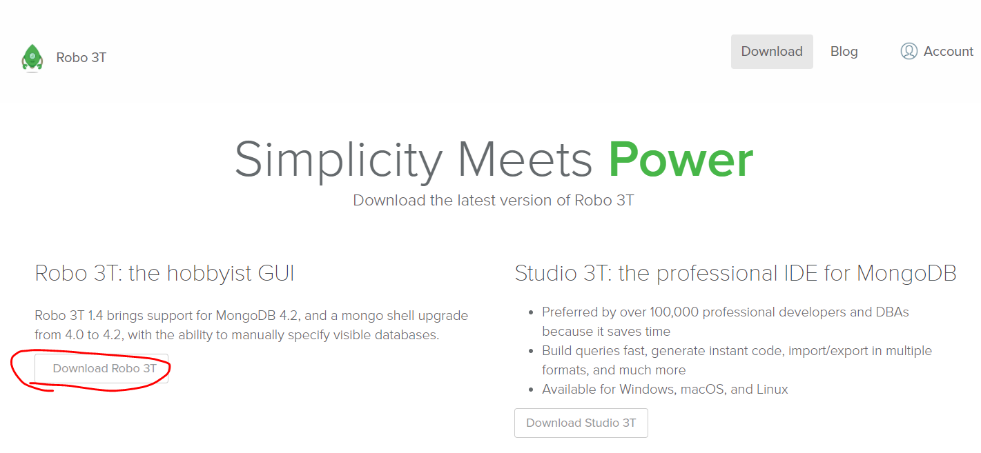 Robo 3T: the hobbyist GUI Robo 3T 1.4 brings support for MongoDB 4.2, and a mongo shell upgrade from 4.0 to 4.2, with the ability to manually specify visible databases. Download Robo 3T