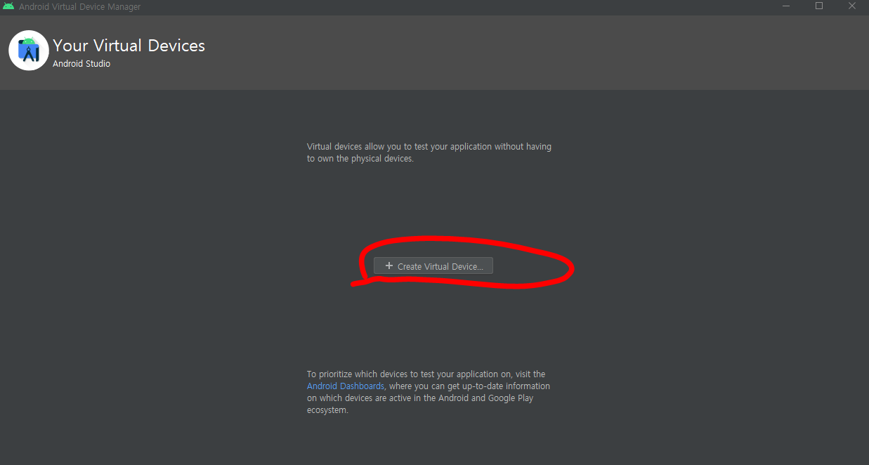 1) 안드로이드 스튜디오 오른쪽 상단에 AVD Manager 클릭