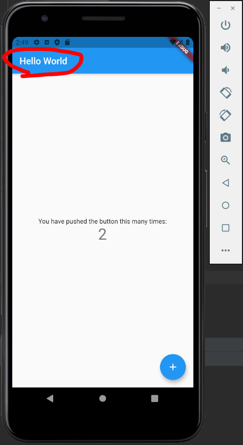 앱바 부분이 Hello World로 변경된 것을 볼 수 있다.