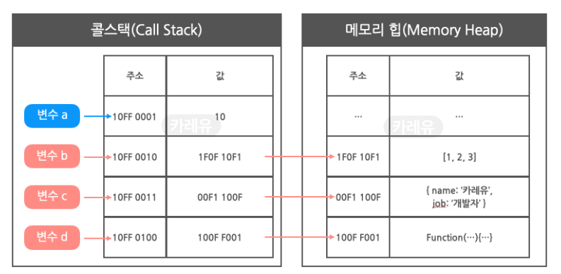 Memory Heap은 참조 타입(object, array, function 등등) 데이터가 저장되는 공간이다.